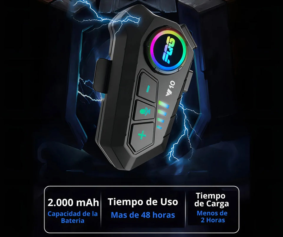 **NOTA: Este auricular NO es un intercomunicador, por lo cual no se puede conectar con otros dispositivos de la misma o diferente referencia. Si eres un repartidor de paquetes que siempre está en movimiento, nuestros auriculares Bluetooth para cascos son una inversión indispensable. Con ellos, puedes mantenerte conectado a tu teléfono mientras realizas entregas de forma segura y eficiente. Con este dispositivo no te perderás ninguna llamada mientras haces entregas. Además, puedes concentrarte mucho más en el tráfico y ofrecerte entregas más rápidas y seguras, especialmente en los días de lluvia, ya que el teléfono tiene protección contra el agua, ¡lo que te ofrece aún más eficiencia en tus entregas en días de lluvia!- Bluetooth 5.3 con un alcance de conexión de hasta 15 metros; - Batería de 2.000 mAh de larga duración; - Micrófono de alta calidad; - Sistema interno que cancela el ruido en el momento de la conexión. - Conexión a hasta 2 teléfonos móviles, escoge uno para reproducción. - Sonido de calidad. - Resistente al agua y al polvo IPX6. - Botones con varias funciones. - Compatibilidad con prácticamente todas las formas de casco. - Viene con todo lo que necesitas para instalarlo tú mismo en tu casco.